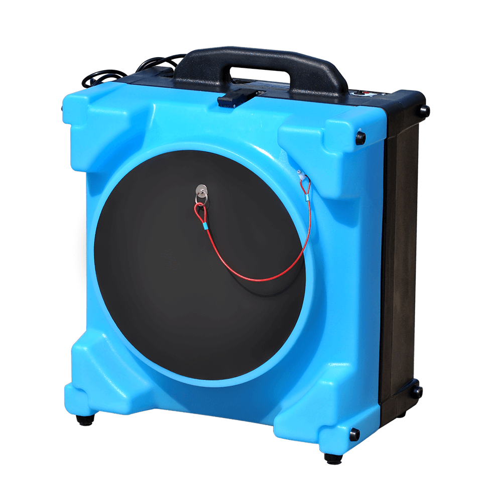 The air scrubber is designed to accept a 16 inlet flexible duct and 10 lay flat outlet duct for a variety of operating set-up options.