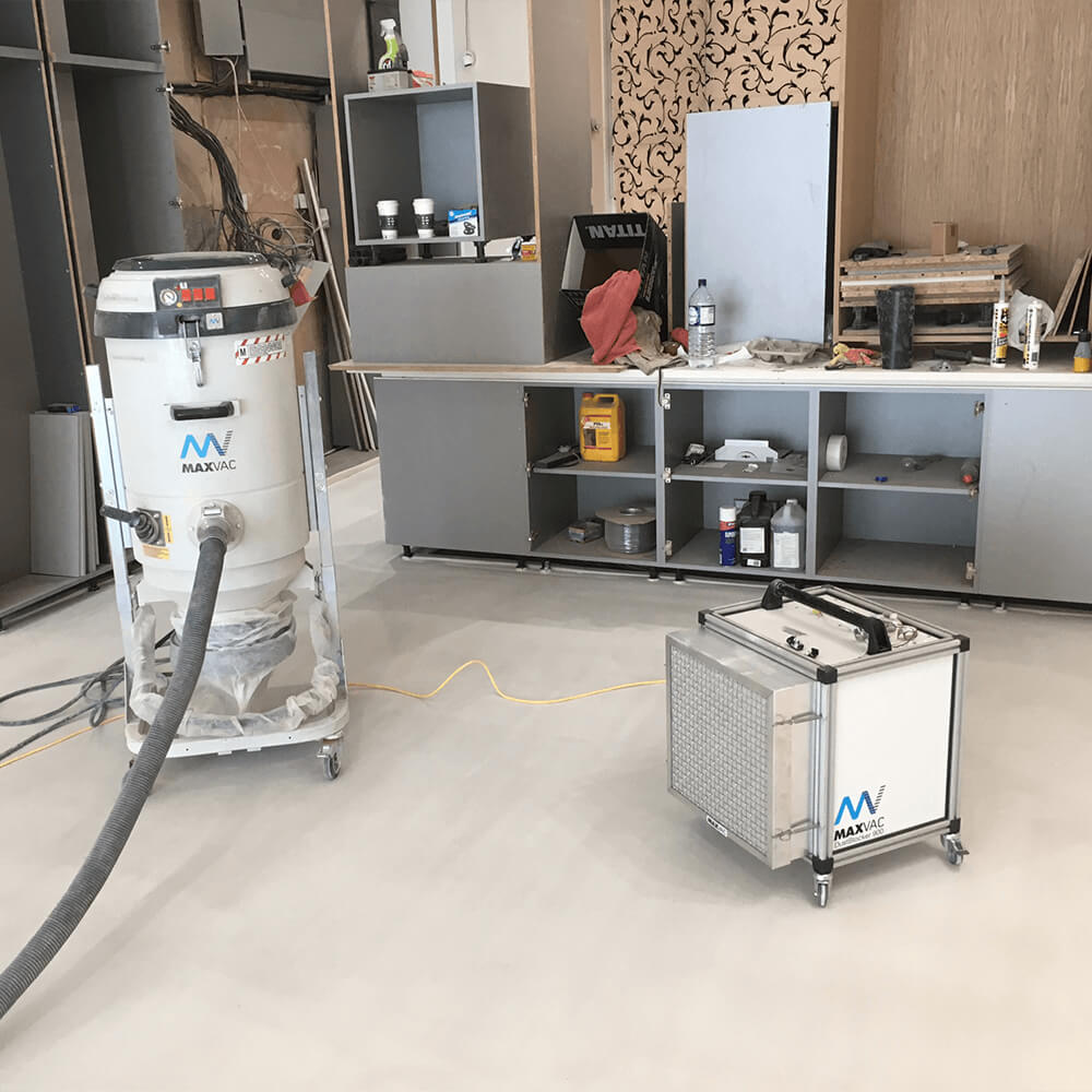 Suitable for many applications from woodworking shops, machine rooms, renovation areas, bakeries, repair workshops and any other areas where silica dust from concrete, brick, grout or mortar may be present. A quiet machine, it is easily deployed in occupied buildings when renovations or refits are being carried out for ultimate dust extraction.
